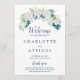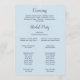 This classic white flowers wedding program is perfect for a spring wedding. The elegant floral design features soft ivory and white roses, peonies, and chrysanthemum with touches of periwinkle blue watercolor flowers and green foliage. Include the name of the bride and groom, the wedding date and location, thank you message, order of service, and bridal party.