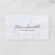 Custom-designed business cards featuring modern hand script brand name on white marble background.