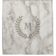 Classy and sophisticated white marble design shower curtain featuring light taupe laurels framing your personalized monogram letter.