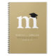This classic and simple graduation design features a bold white monogram letter 'M' of the graduate with a black mortarboard / graduation cap as an accent on a plain gold background.