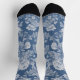 Black-accented women's socks with aninversion of the classic blue toile pattern. Fresh and airy, like waking from a full night's rest feeling toasty and cozy because you wore your socks to bed.