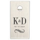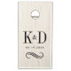 A rustic-meets-elegant wedding cornhole set featuring the couple's monogram initials and ampersand in black typography on a whitewashed wood grain background with your wedding date and a decorative scroll flourish below. The light, airy boards add a relaxed warmth to any outdoor wedding reception. A beautiful keepsake and a thoughtful gift for the newlyweds. All text is fully customizable.