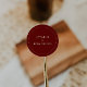 Classic Wine Red Bride & Groom Names Wedding Round Sticker. Personalize with bride and groom names in large, bold typography.