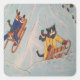 Classic Winter Christmas Sledging Cats Rectangular Square Sticker