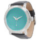 A Wrist Watch with a leather strap and a houndstooth check pattern in trending Monaco Blue and Emerald Green.