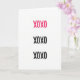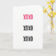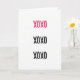 This card shows three “XOXO” phrases stacked in a neat vertical line on a plain white background. The top “XOXO” is bright pink and looks like it was written with a loose marker, giving it an excited, affectionate feel. Under it, two more “XOXO” lines appear in black, matching the same hand-drawn look but feeling a little calmer and steadier. The letters are slightly uneven in a natural way, like a quick note you’d scribble to someone you care about. With so much white space around the words, your eye goes right to the message, and it feels simple and direct. The pink at the top adds a spark of romance, while the black lines underneath read like a quiet reminder that the care is still there ❤️. It’s meaningful because it says “hugs and kisses” without needing a long message, making it easy to give to a partner, close friend, or someone you miss 🥰. Hope it helps you share your Valentine’s Day feelings in a sweet, easy way.