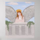 A winged angel with a golden halo leaning on an ivy-covered wall bows her head and crosses her arms in contemplation in the fresco-style digital painting on this poster print.