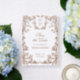 Classical botanical border with crest that keep the double monograms in elegant typography, overall feel of this save the date is very exclusive with sketched botanicals.