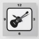 Get a music theme with this acoustic guitar graphic in black and white. This square wall clock is ideal for a music room, teen bedroom, or for any guitar player. You can change the color background of this clock from the default silver to any other color in the Zazzle palette -- just click the orange customize button then edit background to choose a different one.