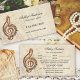 Business card with an artistic image of a musical note on a faded music sheet background. On the back are text fields to make appointments.