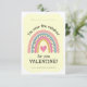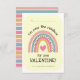 This flat classroom Valentine's Day card features a graphic of a modern abstract rainbow. The text on the card reads: I'm over the rainbow for you Valentine! The backside features a striped pattern using the same colors of the the rainbow that appears on the frontside.