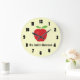 This clock has a light yellow background with a graphic of an apple on the top and room for text below that apple. The text shown here is "Mrs. Smith's Classroom". The clock can be customized to fit your needs. This would make a great gift for a teacher.