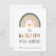 Adorable Valentine's illustration of a rainbow with a red heart with the phrases "You Brighten " and "My day, Valentine". The design features a girly pastel pink, yellow and green color palette.