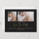 Classy 2 Photos Gold Black Wedding Save the Date. Available digitally and printed. Classy gold and black elegance. Simply replace the two sample photos with your own favorites. Save the Date is in a stylish set script, and easily personalise the rest of the text. Add your QR code to your wedding website on the back makes this a convenient option for your guests to see all the details. Simply change the sample URL with your own and your QR code will be automatically generated.