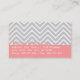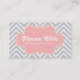 Classy and Elegant, grey and white chevron pattern background. Pink Bracket frame with stitch effects for indicating details. This striking business card with its pastel colors is ideal for anyone who is looking for a memorable yet professional business card design. Design is suitable for the ladies. Other color combinations available. Design can be easily customised to your details. Designed by Rusty Doodle.