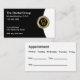 Classy upscale Dentist office appointment and business cards template created with a gold tone tooth emblem you can use on our cards or replace with your own logo. Includes an appointment template on the back.