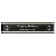 Classy Attorney executive desk name plate in high quality acrylic with classy black background and simulated silver metallic printed design elements that give this desk name plaque some character and style for any professional law office staff, lawyers, or executives.