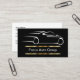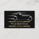 Classy business cards for a business involved in the automotive industry designed in an upscale visiting card with gold tone design elements and a cool car in the background in a two side design that includes two side printing. Make your best first impression with clients in a budget friendly way.