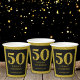 Classy Black And Gold Glitter 50th Birthday Party Paper Cups