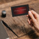 Luxurious minimalist black and red with black triangle pattern professional business card. This modern elegant design is built on a simple template that allows you to insert your own address, email, social media address, phone number, and mobile phone number.