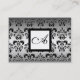 CLASSY BLACK AND SILVER DAMASK SQUARE MONOGRAM BUSINESS CARD