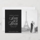This classy elegant save the date card in black and white features a minimalist design with "save our date" styled in a mixture of classic text and elegant calligraphy script that lends a sophisticated, classy style with old money vibes. It also includes a placeholder for your photo that covers half of the front of the card. The back of the card includes an editable placeholder to indicate your wedding website URL, which can also be deleted if the URL is not yet available.