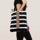 A black and white striped monogrammed tote. This can be used for the beach or shopping. Classy black and white with taupe colored stripe. The monogram stands out. Great for mother's day or birthday gift too!