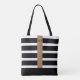 A black and white striped monogrammed tote. This can be used for the beach or shopping. Classy black and white with taupe colored stripe. The monogram stands out. Great for mother's day or birthday gift too!