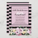 Classy Black Blush Pink Striped Floral Birthday Invitation