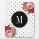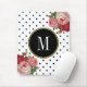 Classy Black White Dots Antique Floral Monogram Mouse Pad