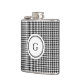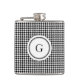 Classy black white houndstooth pattern monogram hip flask