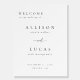A minimal and classic black and white wedding welcome sign. Feel free to change fonts, colors, etc., by clicking on "personalize this design," then "edit using design tool."