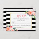 Classy Black White Stripes Floral RSVP Reply Card.