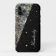 Classy smartphone case design for iPhone designed with simulated sparkling jewels digitally printed on the cover along with outer space stars and monogram space you can personalize with your name drop or monogram initials to make your own. Carry your cellphone in a style of bling as unique as you are.