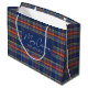Classy Blue Burnt Orange Scottish Tartan Christmas Large Gift Bag