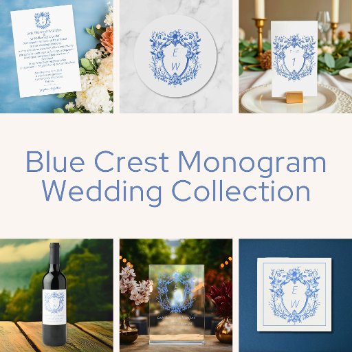 Classy Blue Crest Monogram Wedding Table Number
