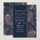 Classy Blue Rose Gold Glitter Paisley Floral Invitation