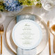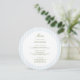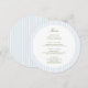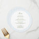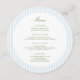 Elevate your table setting with this stylish round menu card. The front features a clean layout with soft blue vertical stripes and elegant typography—perfect for contemporary weddings, rehearsal dinners, or upscale events.