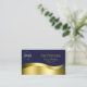 Classy Blue Wavy Gold Decor with Logo QR Code Business Card