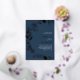 Delight in this enchanting and original artwork, featuring graceful floral and botanical stems in authentic foil on a deep dusty blue backdrop. With its distinct and refined aesthetic, it's an ideal choice for the contemporary couple in search of elegance. On the reverse of this card is a contrasting blush pink watercolor background. Easily tailor it with your individual details to add a personal flourish that mirrors your love story.