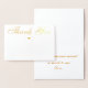 A lovely way to thank your guests for attending your bridal shower, this gold foil card showcases "Thank You" written in large gold foil letters, with a wedding gown underneath. There are three beautiful butterflies to the left of the dress, a warm message awaits you inside. Purchase yours today!