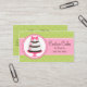 © Socialite Designs. Our couture cakes bakery business card design has an elegant cake on a stand inside a lace circle. A perfect business card for a bakery business or cake designer. Personalize this cake, lace and damask business card with your information.