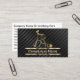 Upscale cleaning service business cards you can customize with powerful two side design that includes includes a simulated gold maid cleaning symbol along with gold printed line accents and text layout you can customize on a striped black line background. Designed for a cleaning service, maid, housekeeper, office cleaning business, or carpet cleaning.