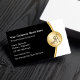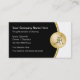 Classy housekeeper business card template in a simulated gold medallion cleaning service or maid symbol with great text layout you can personalize online. Best business cards designed for themes related to maid, house or office cleaning, residential or commercial.