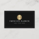 Elegant, black business cards featuring your custom logon on a printed image golden gradient circle and your name, title and subtle gray border on the front. Template fields for your contact information on the back.