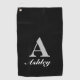 This classy, elegant golf towel design has a customizable name and initial letter. A golf towel like this might be a fun personalized gift for somebody who likes golf. [~Z0000440]