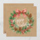 Classy December Wreath With Pink Bow Holiday Card