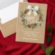 This beautifully designed holiday beverage coaster showcases elegant watercolor artwork of a wreath embellished with a white bow, pinecones, green holly leaves, red berries, and pine needles. Its classy yet rustic design captures the essence of the December holiday season and appeals to those who appreciate artistic illustrations. The coaster offers customization options, allowing you to personalize it with your seasonal greeting, making it a thoughtful choice for spreading holiday cheer.