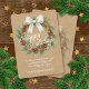 Classy December Wreath With White Bow Watercolor Holiday Card