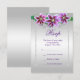 Beautiful, glamorous trendy, modern, romantic and sophisticated RSVP cards for women's birthday party events. Elegant and glamorous fabulous sixtieth birthday. With a beautiful fancy printed image of beautiful silver rhinestone jewel diamonds decoration border frame, in stunning silver colors all printed on a glamorous silver gradient background with a pretty display of purple colored flowers across the top. All text, font size and font colors are fully custromizable. This is a beautiful design with cute, stylish, silver and purple colors. Perfect for spring/summer events, but can be used for any season . A fashionable modern design with a sophisticated romance look. , If you would like help in customizing your product, or would like matching products please contact me through my store and i will be very happy to help you. This example can be used for any year/event.
